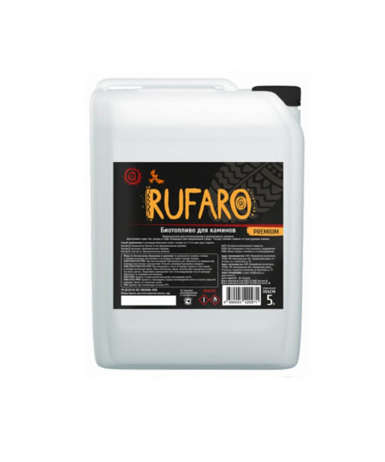 Топливо для биокаминов "Rufaro Premium" емкостью 5 литров.
