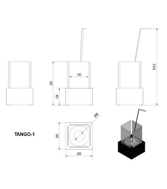 Заказывая биокамин Танго-1 в тёмном исполнении вы получаете полностью готовое к эксплуатации устройство с защитным стеклом, подставкой и специальной рукояткой для гашения пламени.