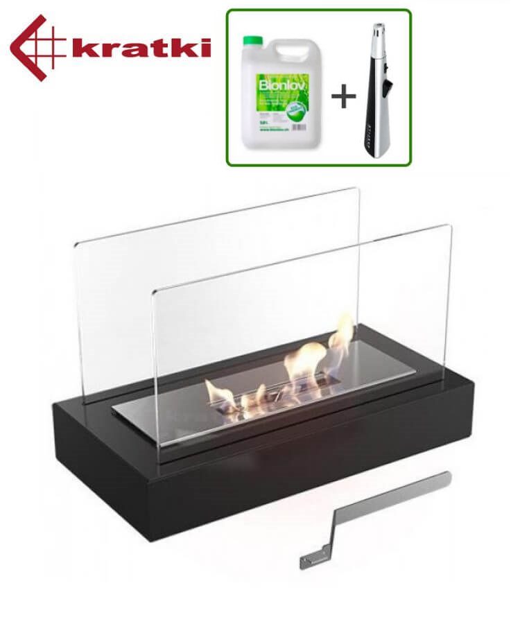 Комплектация: основание, топливный блок, пламегаситель+рукоятка, инструкция, стёкла, Биотопливо, Зажигалка.